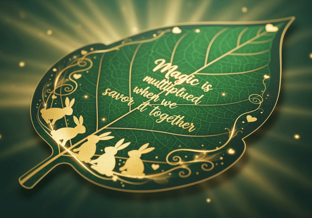 Drawn by curiosity, you approach the ancient Moumigai tree. At its roots, a softly glowing doorway appears—petals drifting out, golden light spilling onto the moss. The bunnies gather, their eyes wide with wonder. The Moumigai Ritual is about to begin. Something magical is about to begin…