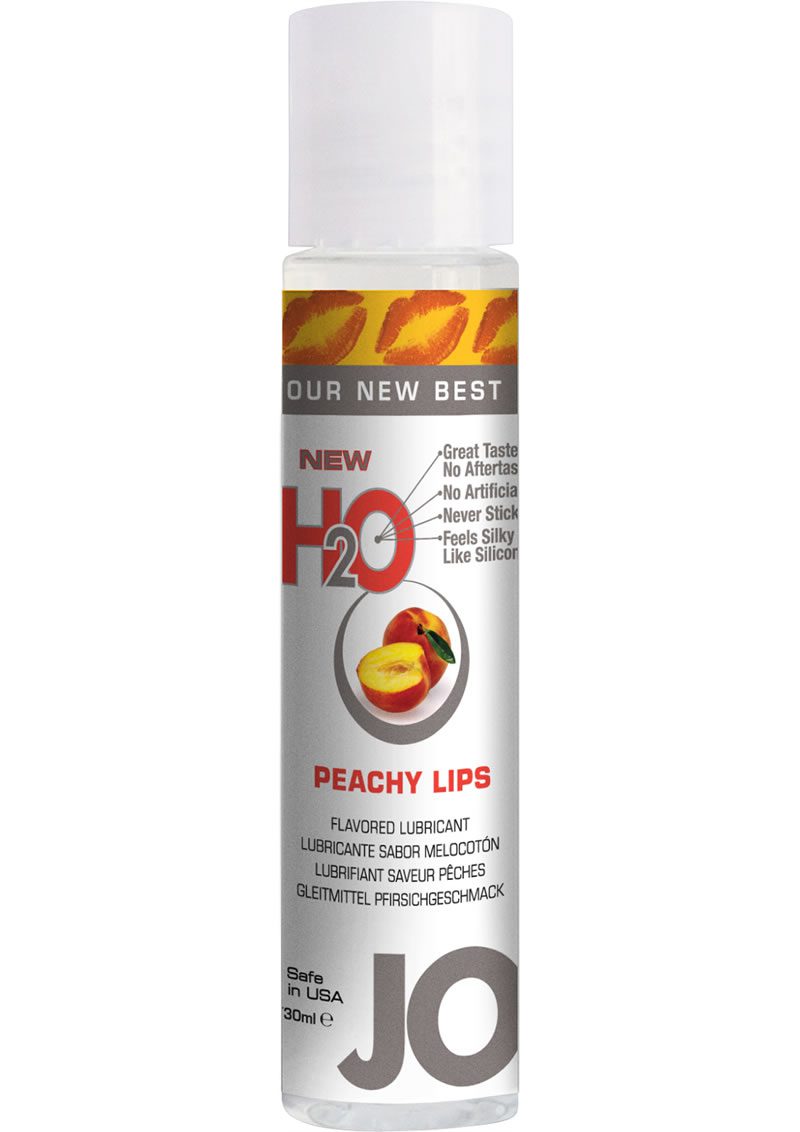 JO H2O Peachy Lips is a delicious water-based personal lubricant that adds spice to your sensual experience. JO Flavored is the only flavored lubricant that feels silky smooth like silicone.- Great Taste, No aftertaste- No Artificial Sweeteners- Never Sticky or Tacky- Washes off easily with water- 100% latex safe