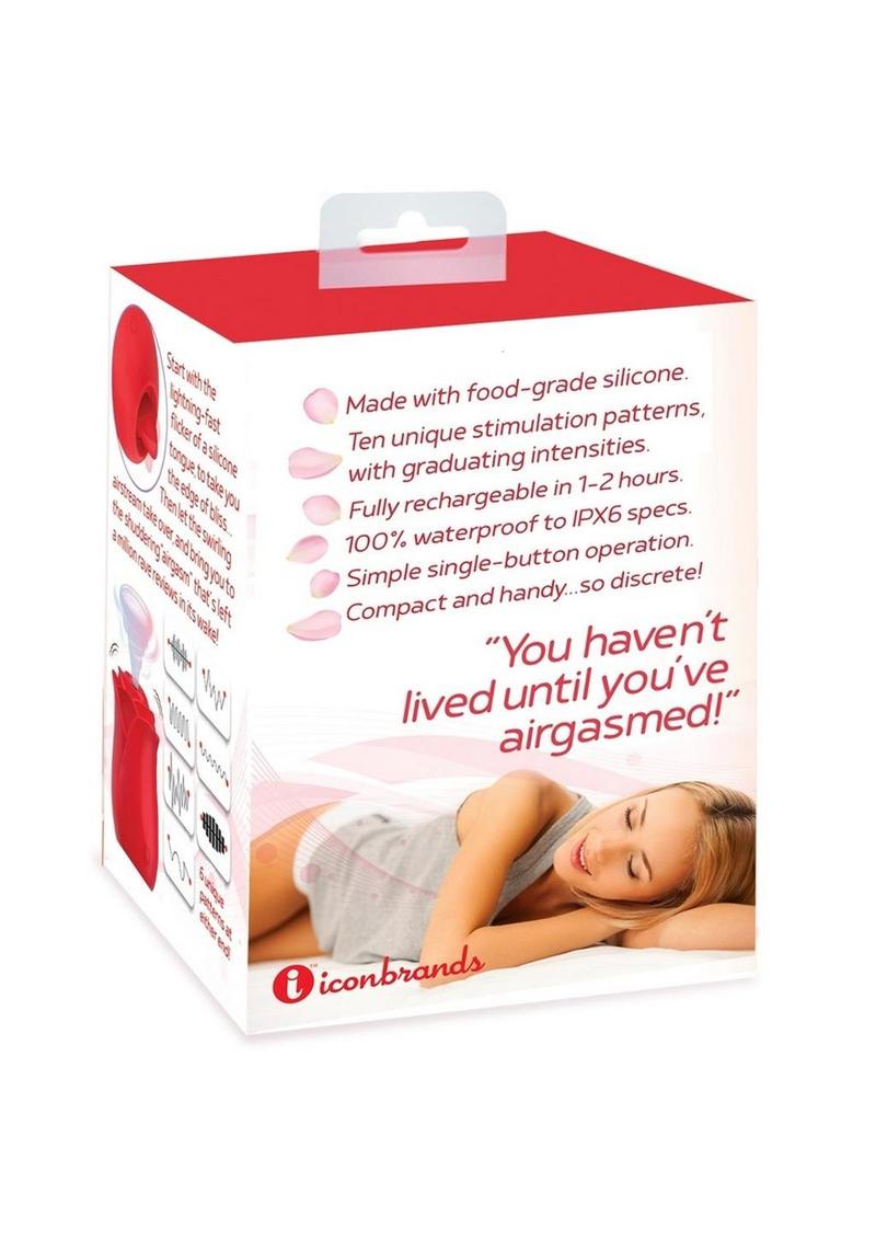 The classic suction rose but with a bonus, a wildly quivering tongue on the opposite end. Tongue and suction both have ten speeds, and recharge fast and easy with magnetic UBS ports. 100% medical-grade silicone and fully waterproof to IPX6 specs! In Icon`s own lipstick red, the brightest red in silicone!   Strong suction on one end Flickering tongue on the other! 10 speeds suction and flicker Icon`s own lipstick red Perfectly hygienic silicone